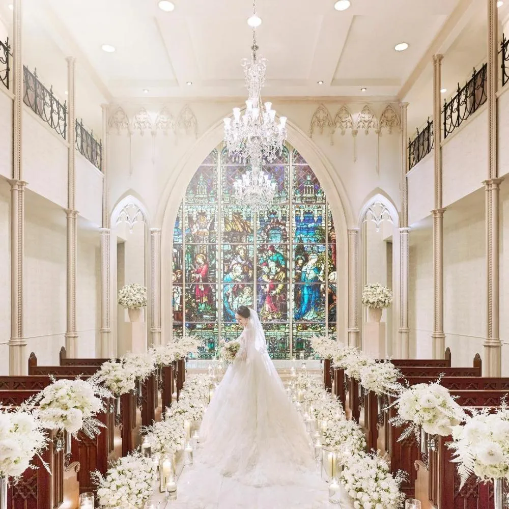 好みも見つかる♪2つのチャペルを徹底比較!海と空と緑に囲まれた絶好ロケーションで叶える天空のチャペルと、150年の歴史を誇るステンドグラスが飾られるセントアンドリュース教会を見比べて*試食や会場見学も
